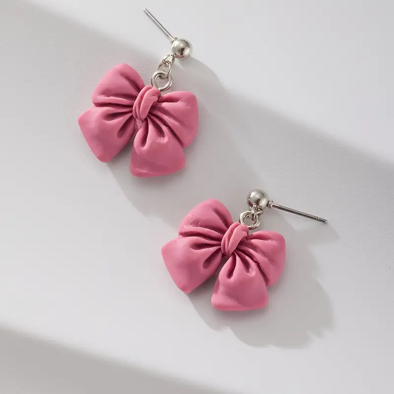 Add a cute and elegant flair to your wardrobe with these pink resin bow stud earrings, perfect for daily wear or parties.