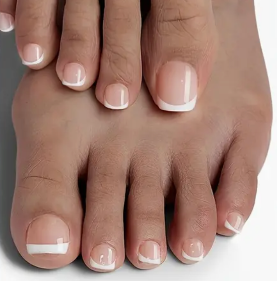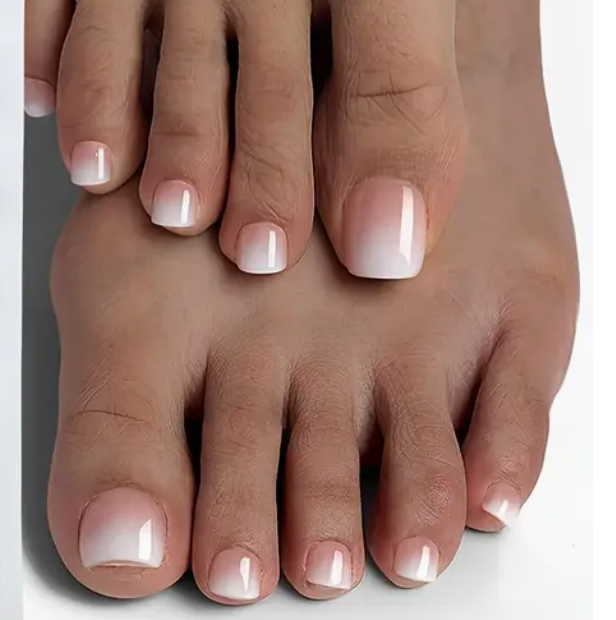 These beautiful nude-to-pink gradient French ombre toe nails offer a soft and elegant design, perfect for womenβs foot care. With a glossy finish and soft gel tips for easy application, they bring a luxurious touch to your toes. πΈπ
