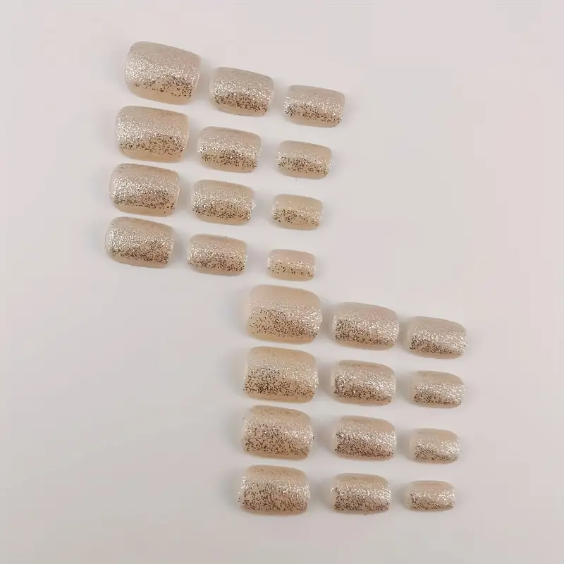 This sweet set has a sparkly pink gradient, short square shape, and a retro vibe that’s both playful and elegant. Comes with jelly glue and file. Perfect for parties, festivals, or girls’ day out!