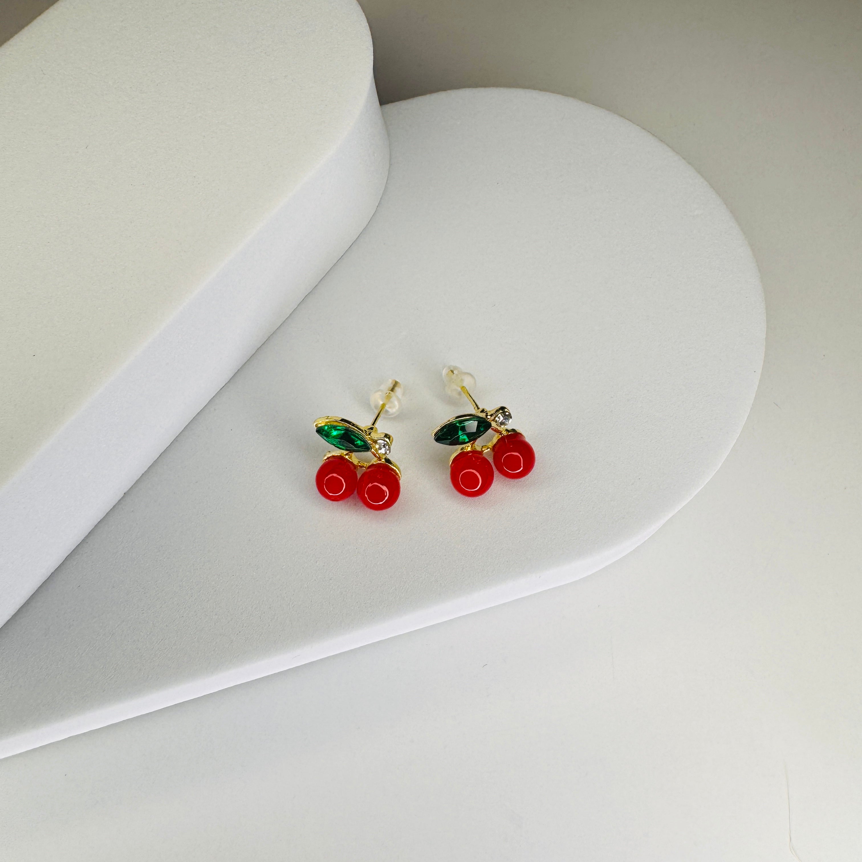 Sweet and fashionable cherry stud earrings, perfect for adding charm to your daily outfits or gifting.