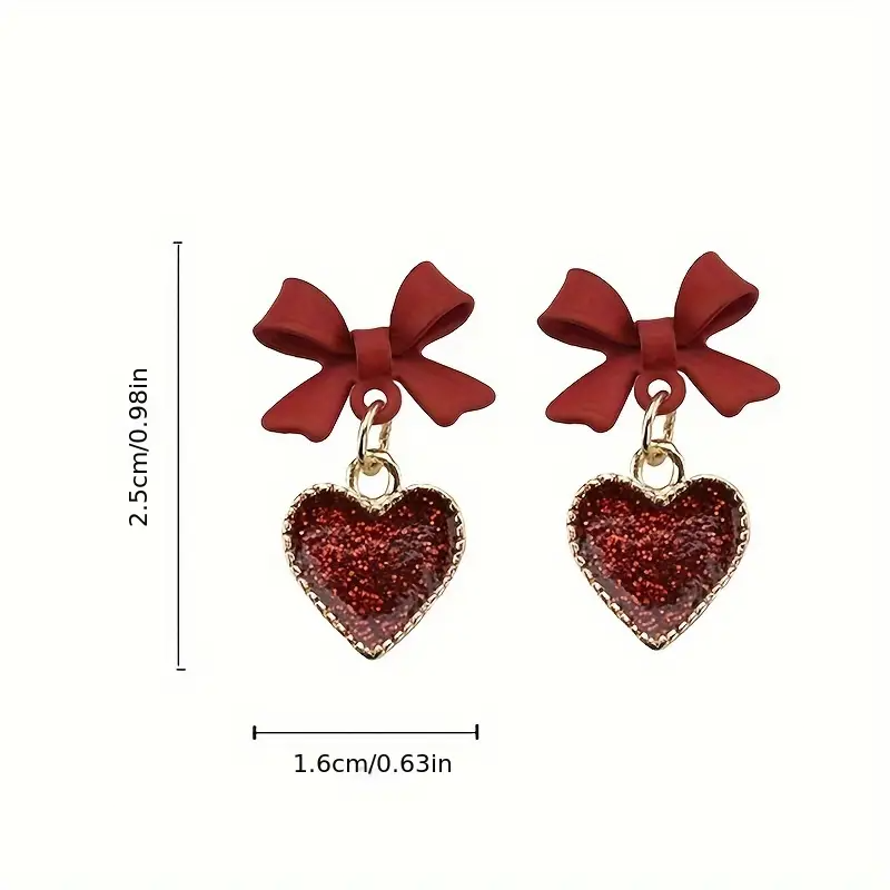 Red hearts and bows meet cascading tassels in these vintage-inspired earrings, accented with sequins for a romantic, all-season party look.